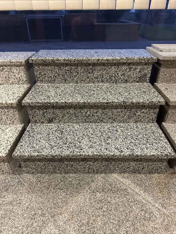 Granite known for its dark gray base, decorated with lighter gray and white spots.
