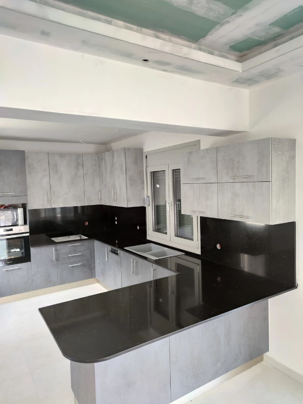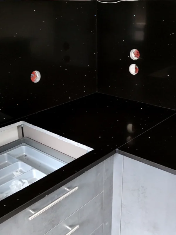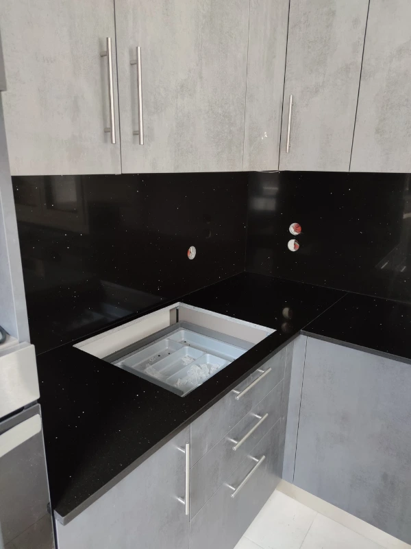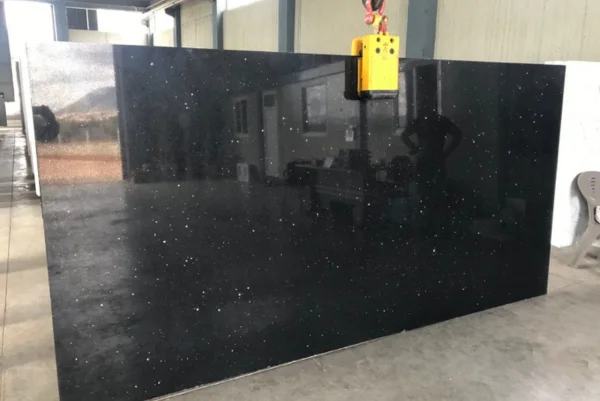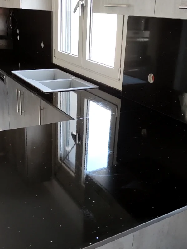 Τεχνογρανίτης σε μαύρη απόχρωση με κρυστάλλους που προσδίδουν φωτεινότητα και κομψότητα σε κάθε χώρο.