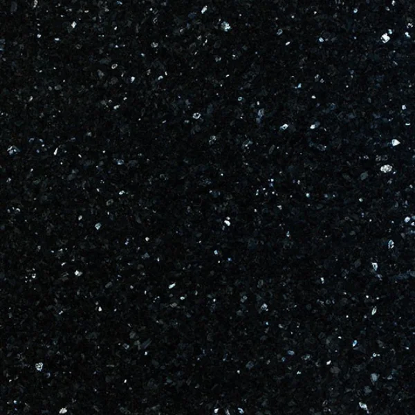 Γρανίτης με βαθύ μαύρο φόντο με ιριδίζοντες κρυστάλλους σε αποχρώσεις του ασημί, σμαραγδί και μπλε.