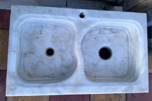 Μαρμάρινος παραλληλόγραμος νεροχύτης με δύο θέσεις σε αγυάλιστη μορφή.