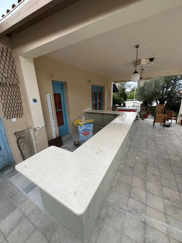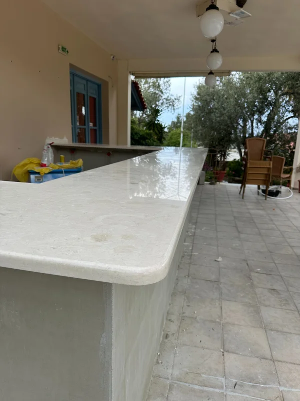 Μπεζ μάρμαρο με απαλά καφέ νερά. Ιδανικό τόσο για εσωτερικούς όσο και για εξωτερικούς χώρους.
